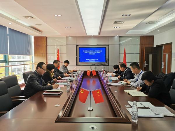 12月4日下午,我校3项市级课题结题鉴定会在国际教育园校区行政楼303会议室召开。出席鉴定会的专家有苏州农业职业技术学院司文会教授、南京晓庄师范学院钟玖英教授、苏州市职业大学方向阳教授,苏州建设交通高等职业技术学校刘庆根副教授,会议由科研处薛洋洋老师主持。