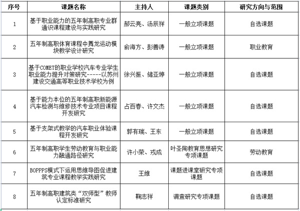 为进一步推进“十四五”期间学校职业教育内涵建设,根据《关于组织申报省、市教育科学“十四五”规划2021年度课题的通知》,科研处组织各部门教师申报相关课题。经评审,拟推荐下述课题参与省、市“十四五”规划2021年度课题评选,现予以公示,公示期为2021年9月16日至9月18日。