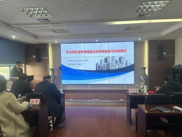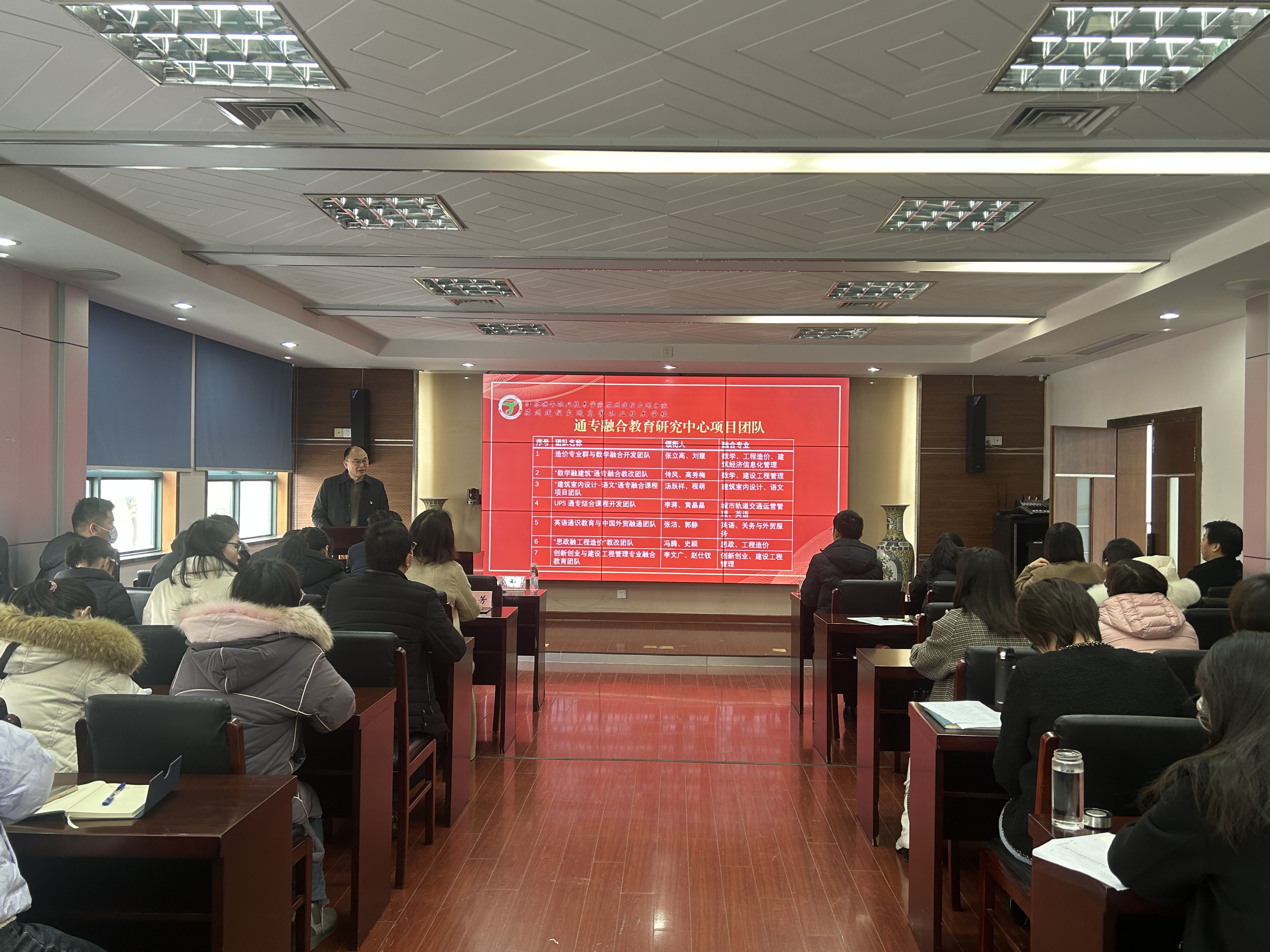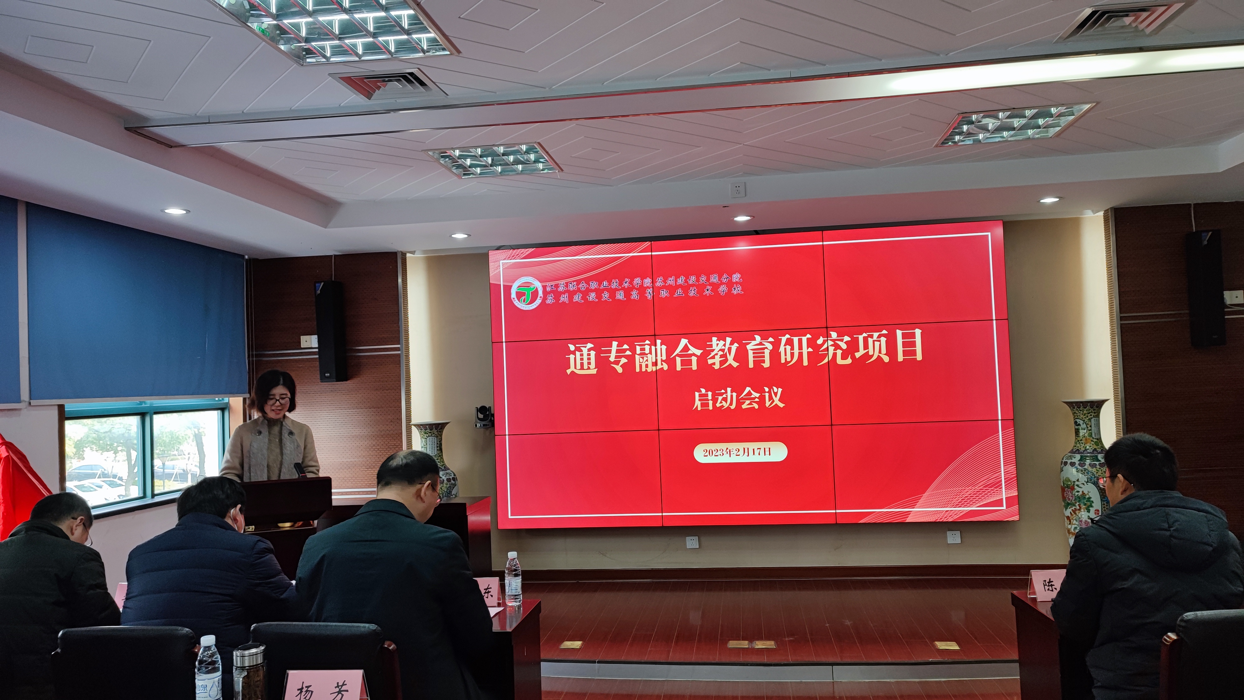 2月17日下午,我校于国际教育园校区215会议室举行了通专融合教育研究项目启动会议。会议由科研处处长杨芳主持。江苏师范大学教育科学学院副院长陈鹏教授受邀开设了通专融合教育专题讲座。学校副校长谢永东、校长办公室主任杜利军、产教融合发展中心处长丛俊华、基础部主任刘庆根、工管系主任冯均州、轨道系副主任李蒋、商贸系主任罗明及学校60余名骨干教师参与本次会议。
