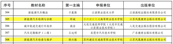 近日,教育部公布了第二批“十四五”职业教育国家规划教材名单,我校邱斌老师主编的《新能源汽车检测与诊断》和徐兴振老师主编的《新能源汽车检查与维护》成功入选。这是学校在教材建设和教学改革领域取得的又一项国家级成果,充分展现了学校在深化教学改革、提升人才培养质量方面的卓越成效。